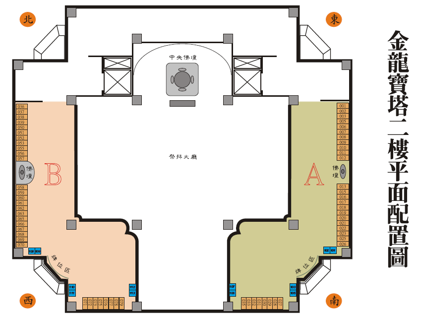 本樓層配置有雙人骨灰室、個人骨灰室及福牌位。