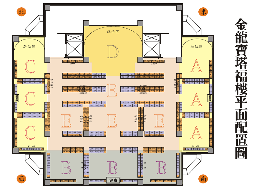 本樓層配置有雙人骨灰室、個人骨灰室及福牌位。