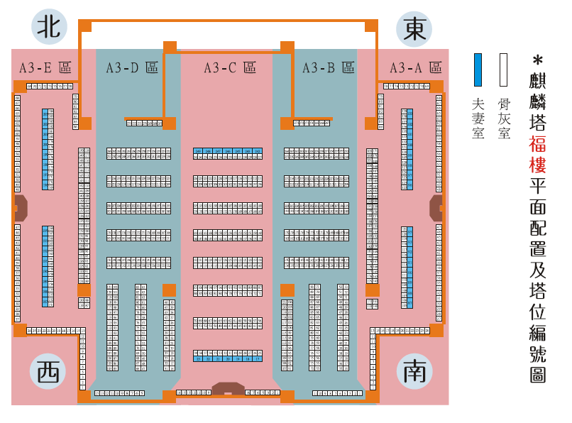 本樓層配置有雙人骨灰室、個人骨灰室及福牌位。