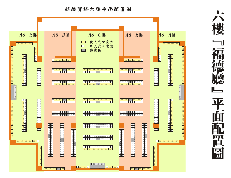本樓層配置有雙人骨灰室、個人骨灰室及福牌位。