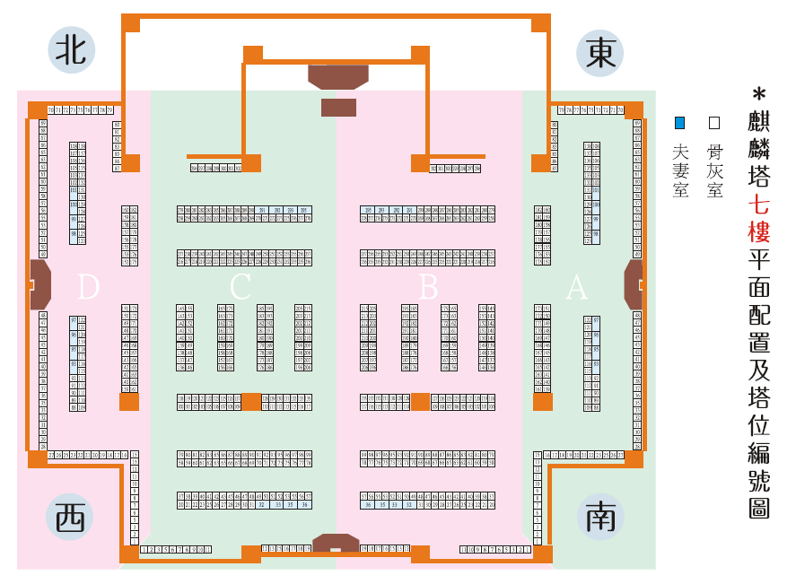 本樓層配置有雙人骨灰室、個人骨灰室及福牌位。