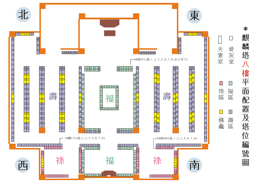 本樓層配置有雙人骨灰室、個人骨灰室及福牌位。