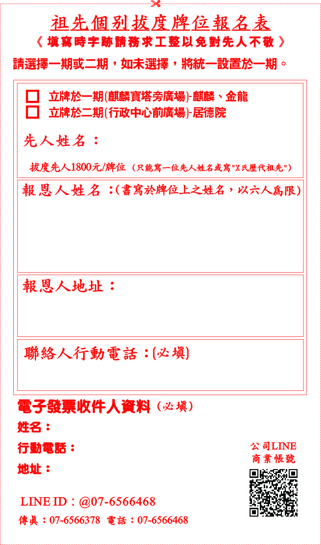 代辦祭品報名表